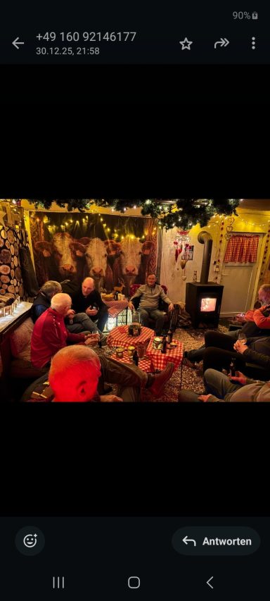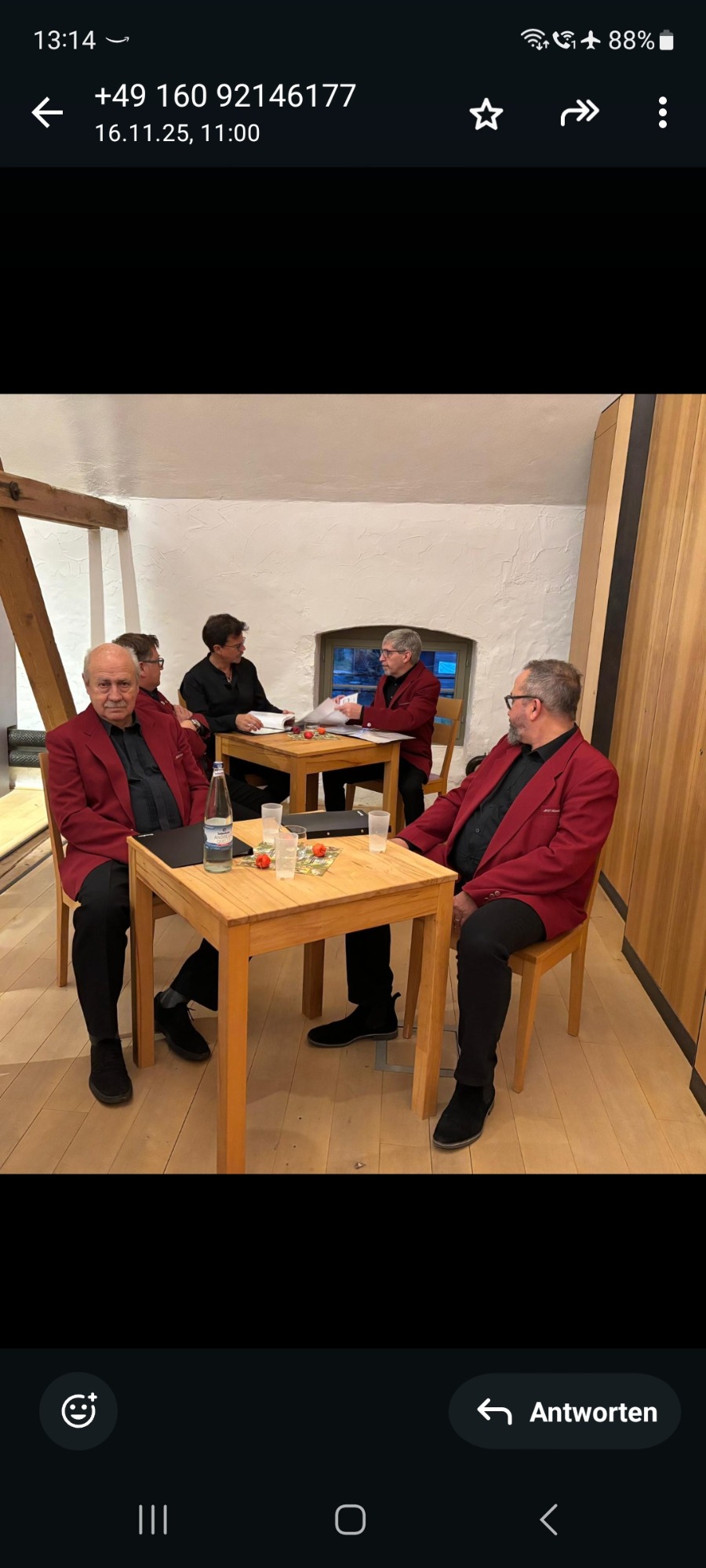 Geburtstagsständchen für Sänger Harald R. im Clubraum der Stockstädter Altrheinhalle